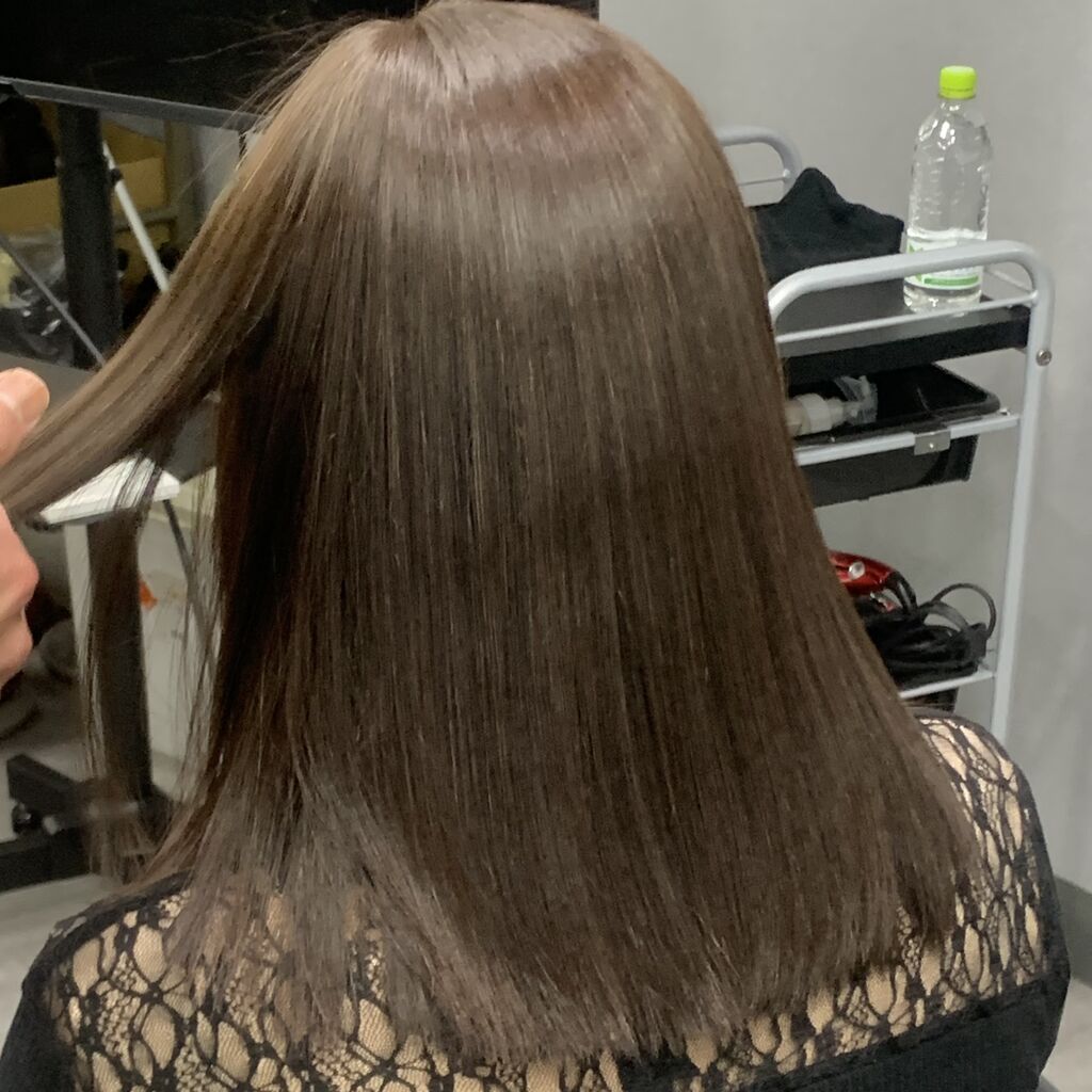 赤みを抑えたグレーベージュ系で染めました